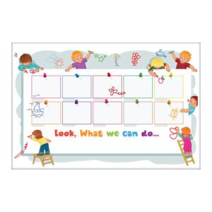 In size 4’x6′ there are 18 individual spaces to place children’s art work. In size 4’x8′ there are 21 spaces.